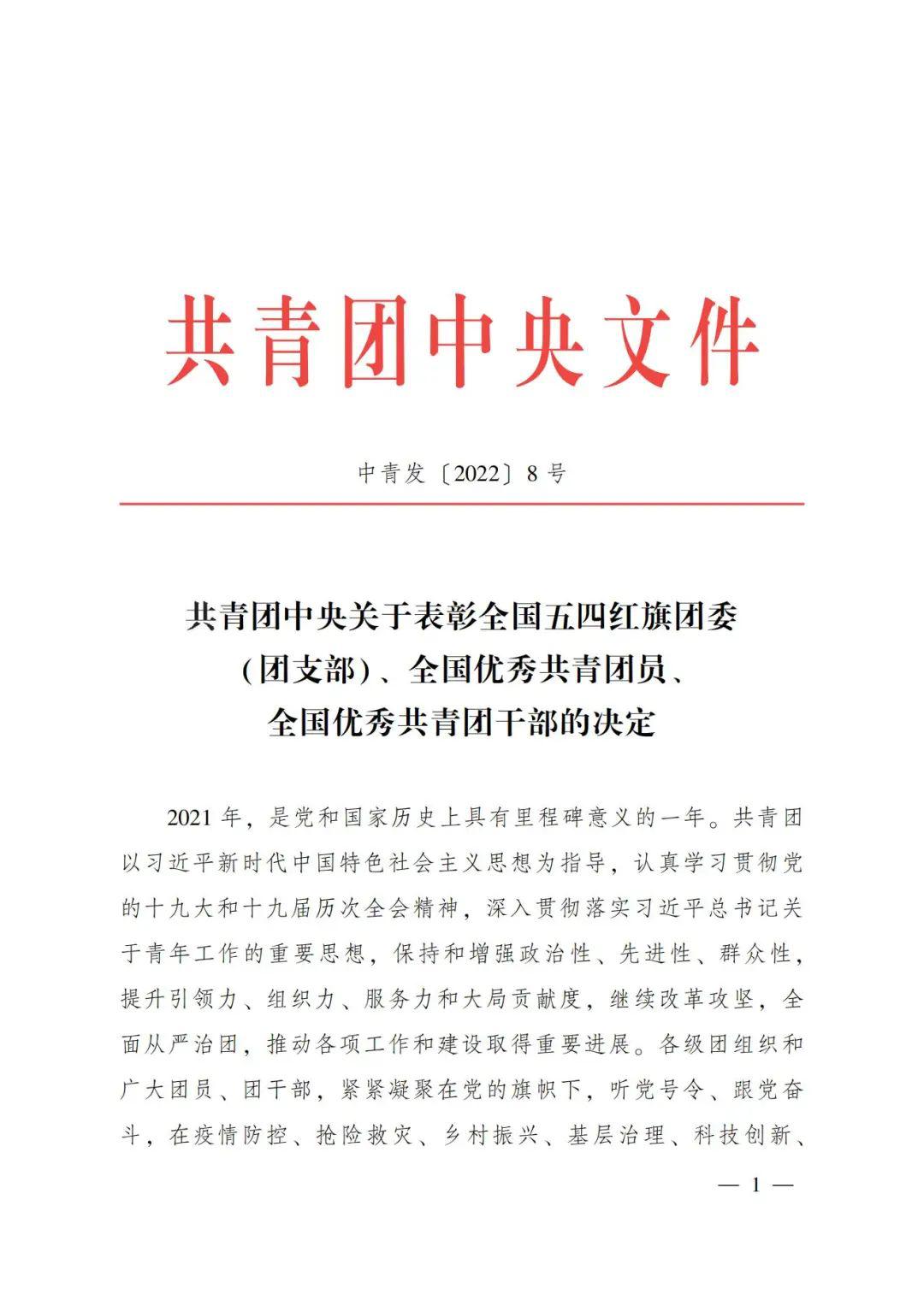 4月13日,共青團中央作出表彰決定,授予293個團組織全國五四紅旗團委稱號,授予377個團組織全國五四紅旗團支部稱號,授予457人(含追授3人)全國優秀共青團員稱號,授予341人(含追授1人)全國優秀共青團干部稱號。